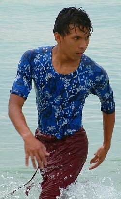 If you have ever been to a Thai beach resort (we're not talking about tourist traps like Phuket or Pattaya) then you will know that 90% of the people swim in the sea with all their clothes on. You will rarely see a woman in a swimming costume. And hardly ever will they wear a bikini. Men usually swim in jeans and tee-shirts, or hoodies to protect from the sun.